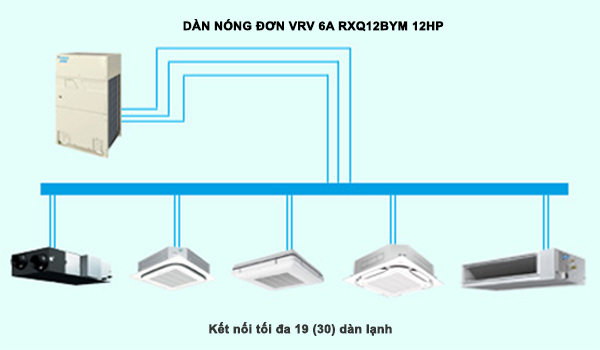 Dàn nóng máy lạnh Daikin VRV 6A RXQ12BYM kết nối tối đa 19 (30) dàn lạnh