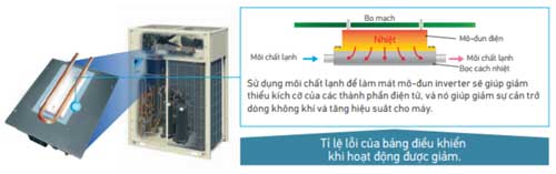 - Độ an toàn cao cả khi nhiệt độ môi trường cao: Có thể giữ cho hoạt động ổn định ngay cả ở nhiệt độ môi trường cao bằng cách làm lạnh mô đun điện Inverter. Điều này giúp duy trì khả năng điều hòa không khí và giảm tỷ lệ hư hỏng.
