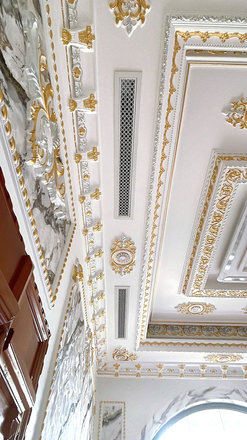 Dàn lạnh giấu trần nối ống gió với miệng gió hoa văn được thiết kế riêng biệt, tạo nên sự đẳng cấp và tinh tế trong từng chi tiết cho Biệt phủ
