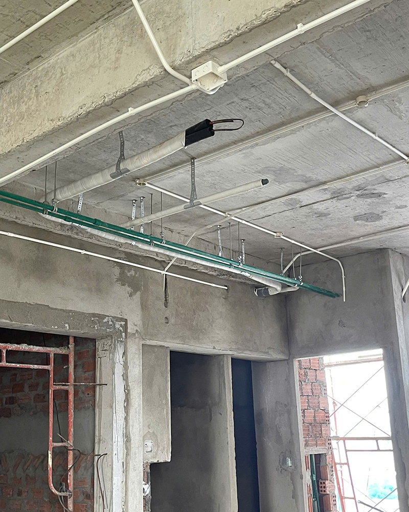 - Kỹ thuật lắp đặt: Toàn bộ đường ống được đi thẳng hàng, cố định chắc chắn bằng hệ thống giá treo và thang máng cáp chuyên nghiệp, đảm bảo tính thẩm mỹ cao và thuận tiện cho việc bảo trì sau này.